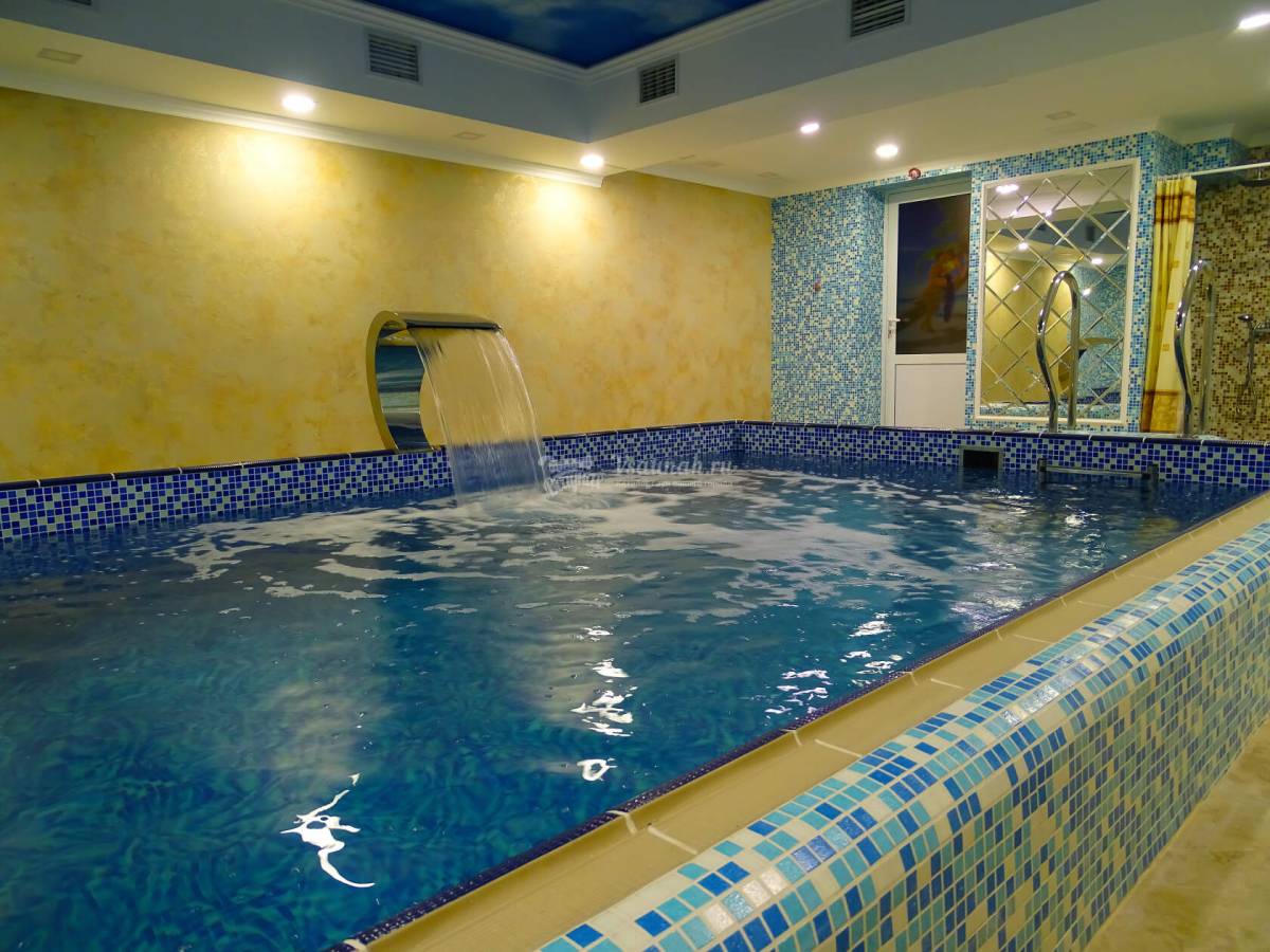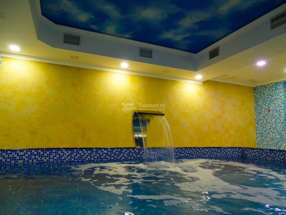 Бассейн (+1100 руб./час), Теплый бассейн, Гидромассаж, Водопад, Подсветка, Аэромассаж, Искусственное течение, Фонтан, Фильтрация, Артезианская вода, Римская лестница, Искусственная волна,